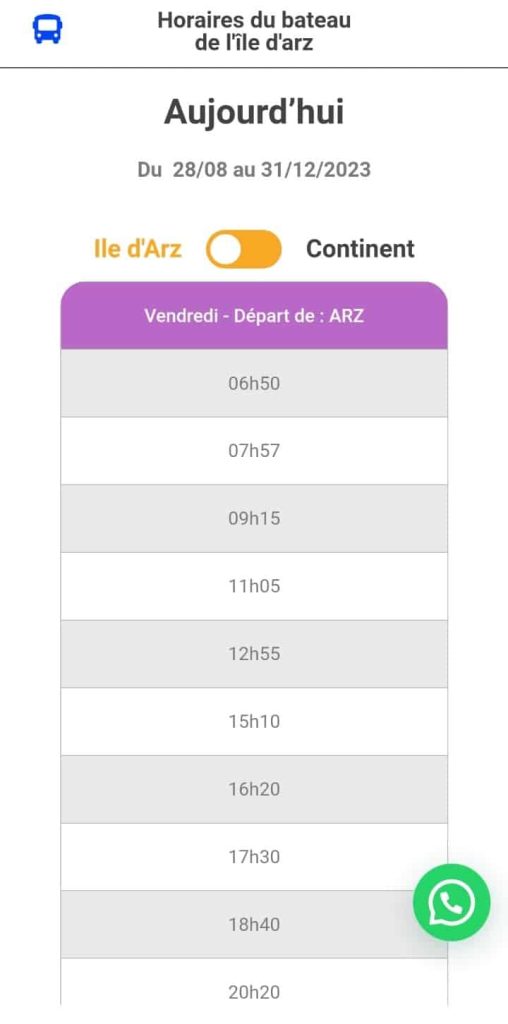 Tous les horaires du bateau de l’île d’Arz sont disponibles sur le dépliant disponible au format papier dans le bateau. Mais ceux qui n’ont pas le dépliant avec eux et qui cherchent cette information vont plus souvent chercher le format numérique sur le site officiel de la compagnie (cliquez ici pour y accéder). Mais il y a un problème avec les horaires officiels, et si vous venez souvent à l’île d’Arz, vous l’avez certainement vécu.
